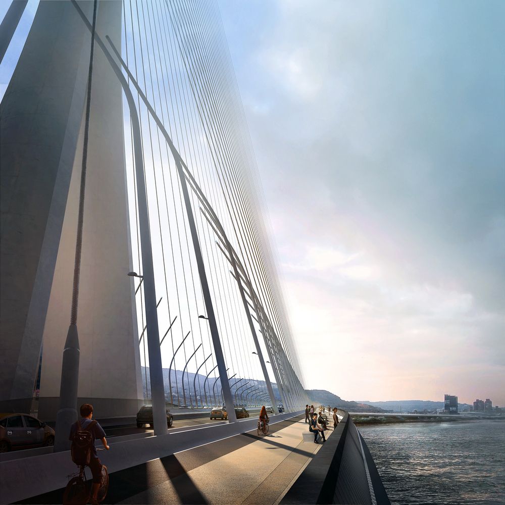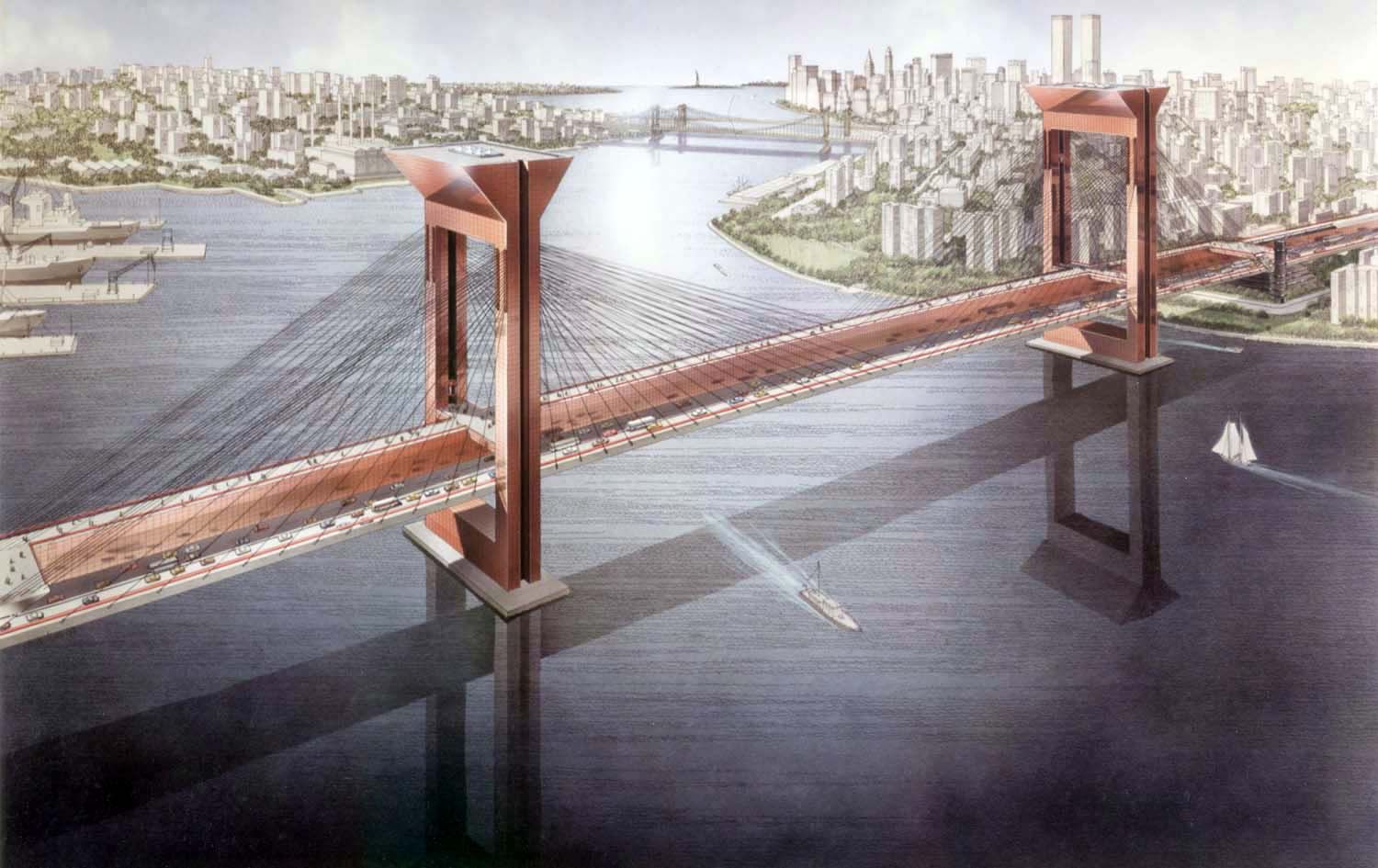 1987 Williamsburg Bridge Competition; New York, NY; Der Scutt Architects; Image © Suns Hung; Watercolor w/ airbrush