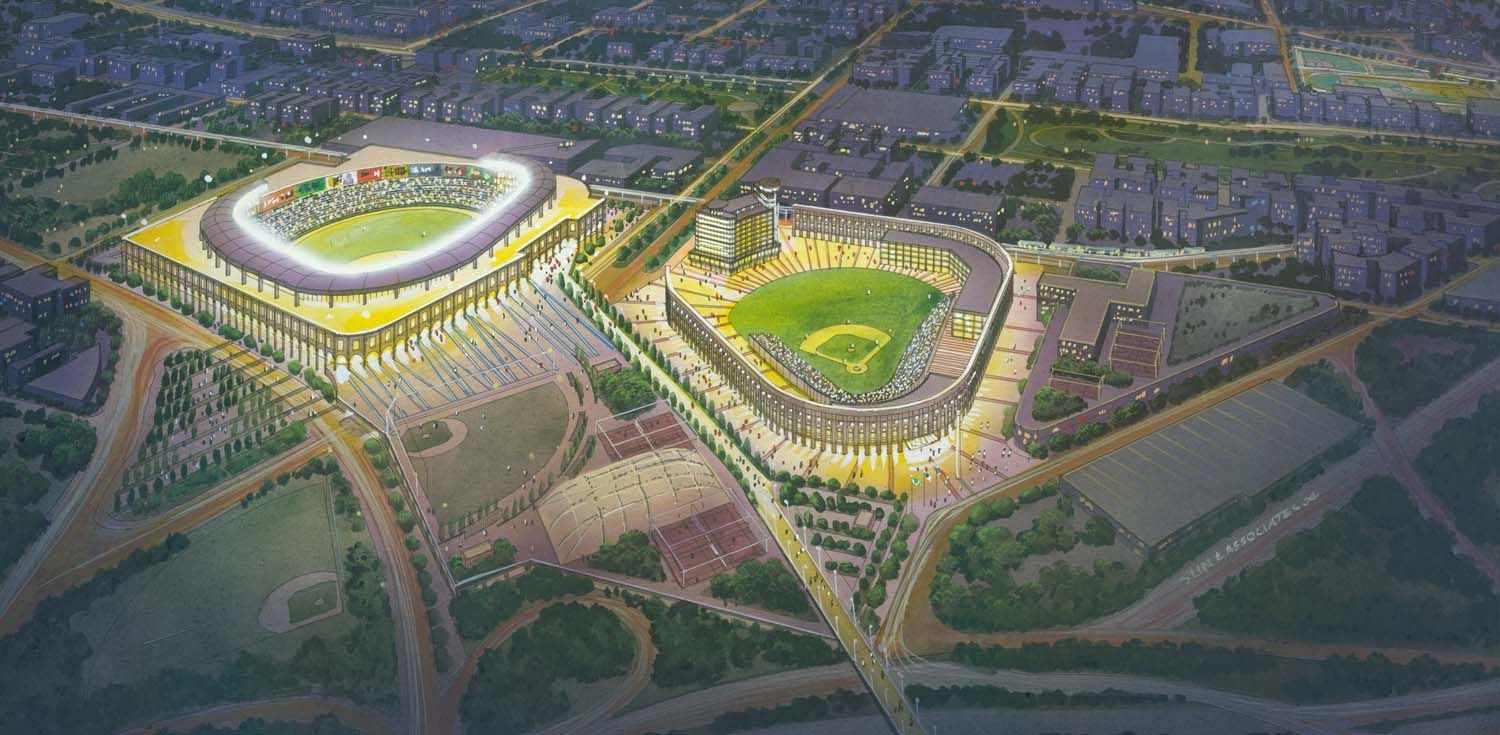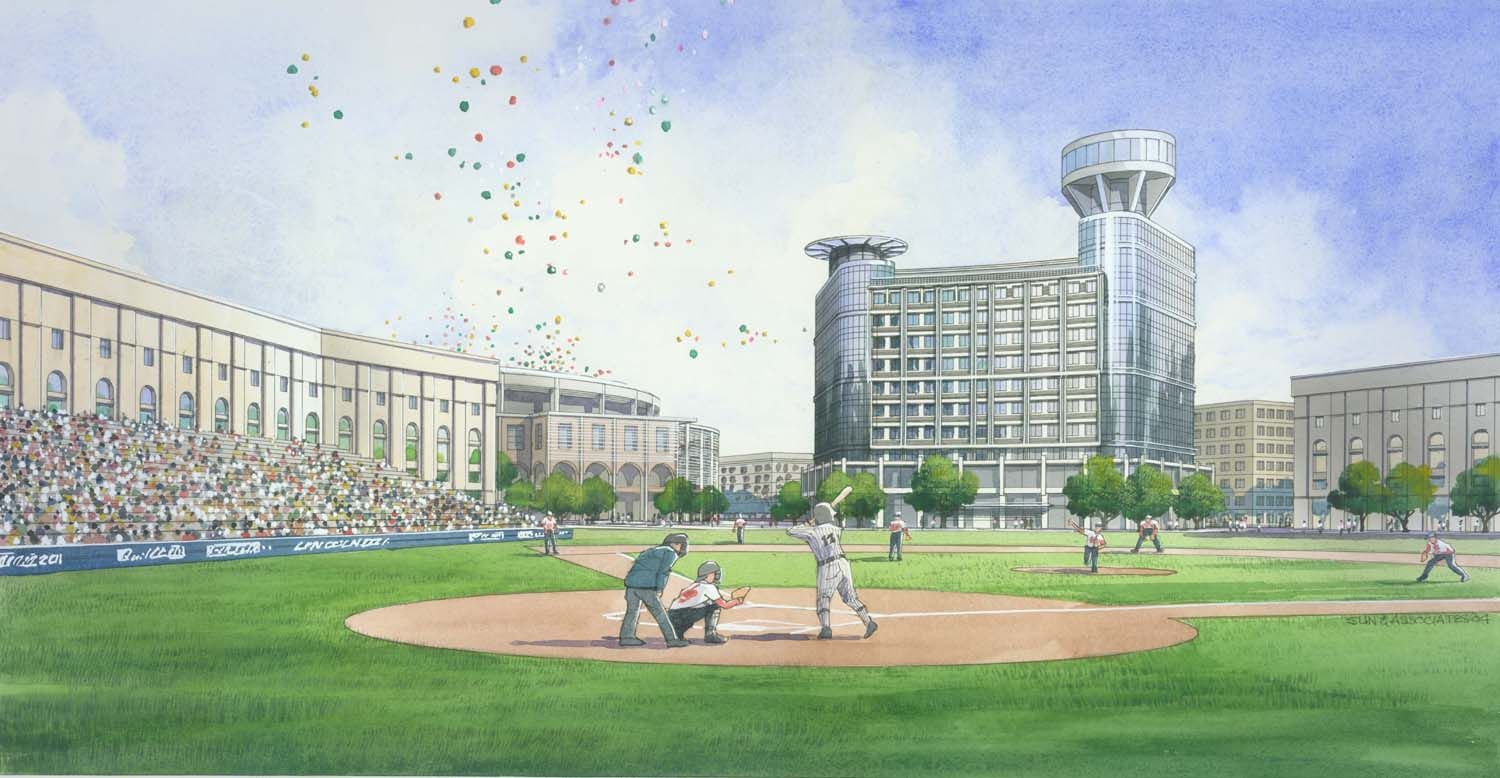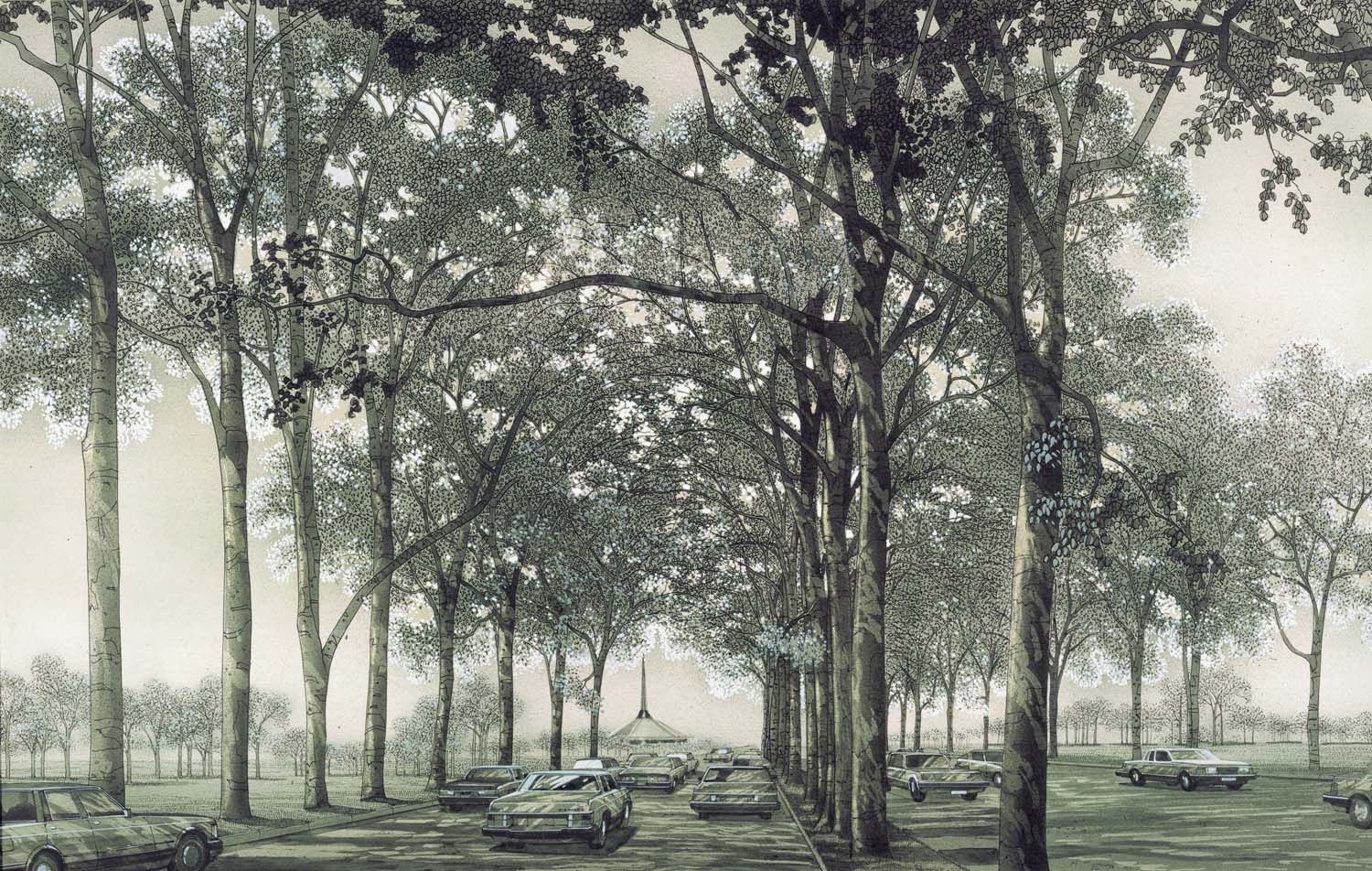1985 Four Gates to Columbus, Columbus; Emilio Ambasz & Associates; Image © Suns Hung; Watercolor w/ airbrush