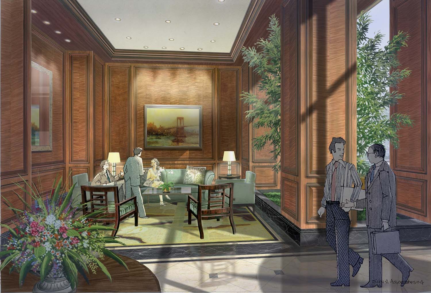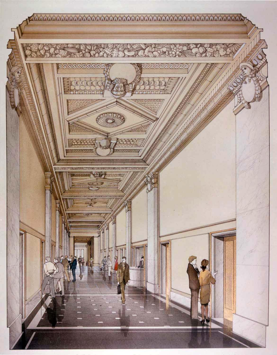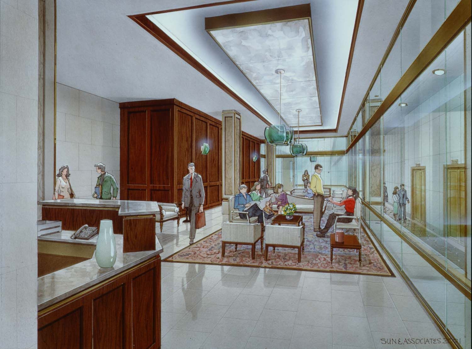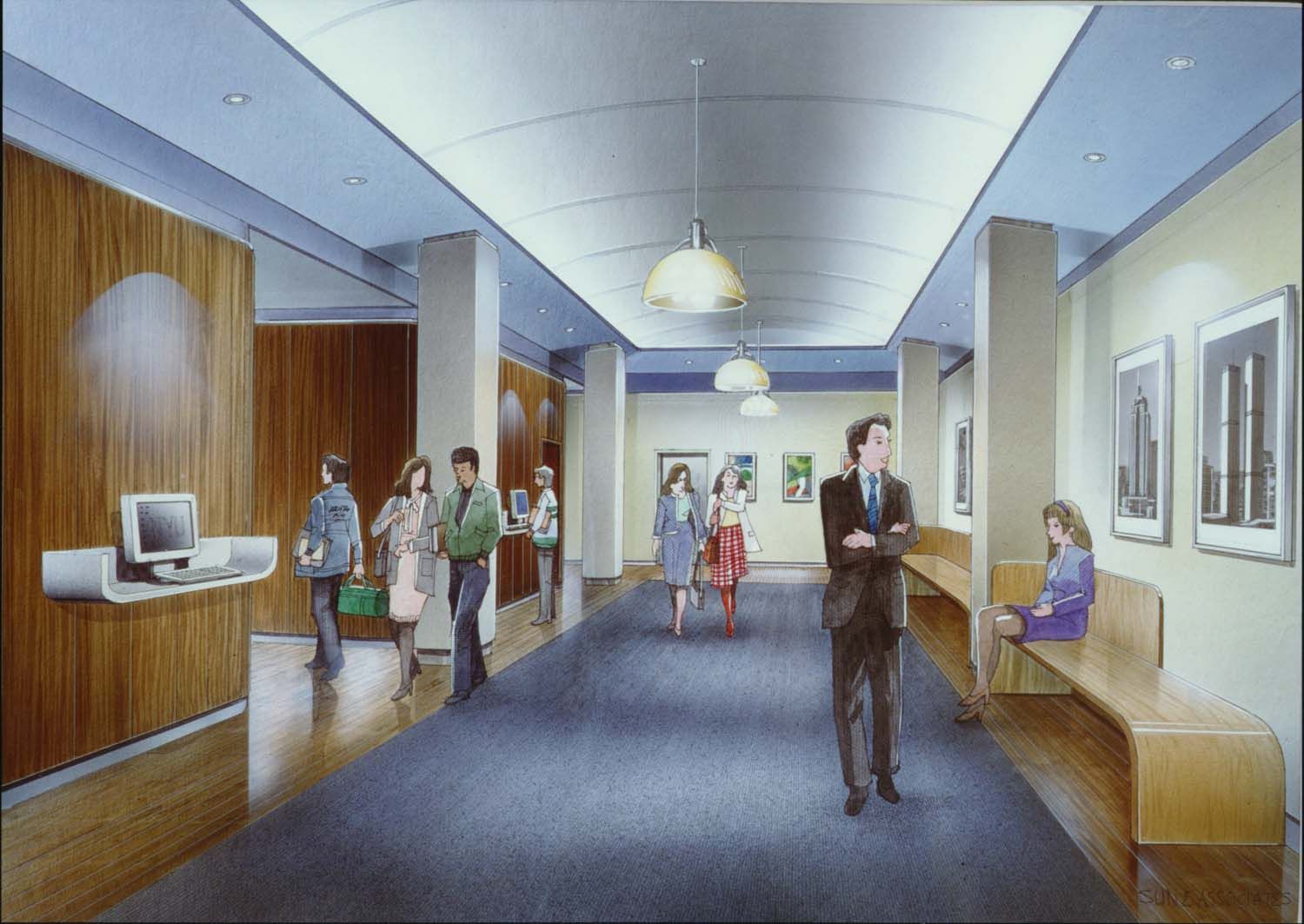 1988 Trinity Building Renovation Lobby; New York, NY; Swanke Hayden Connell Architects; Image © Suns Hung; Watercolor w/ airbrush