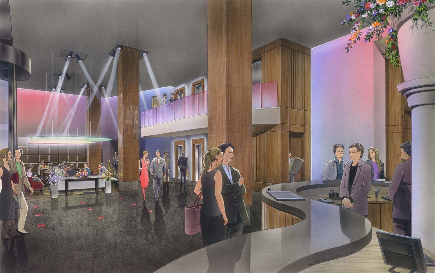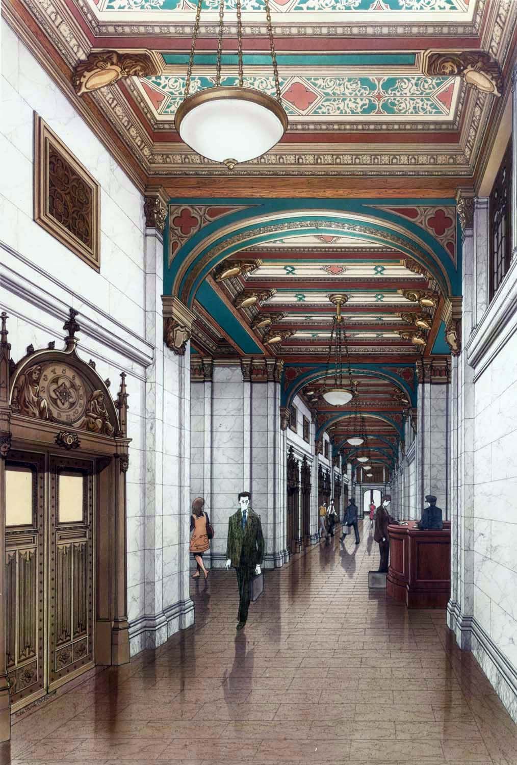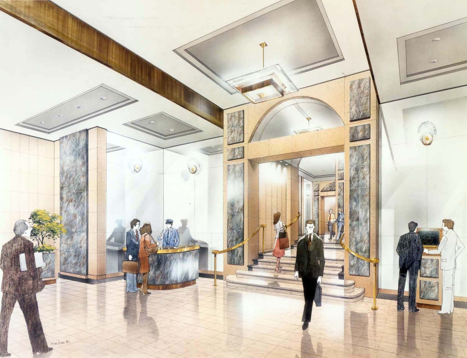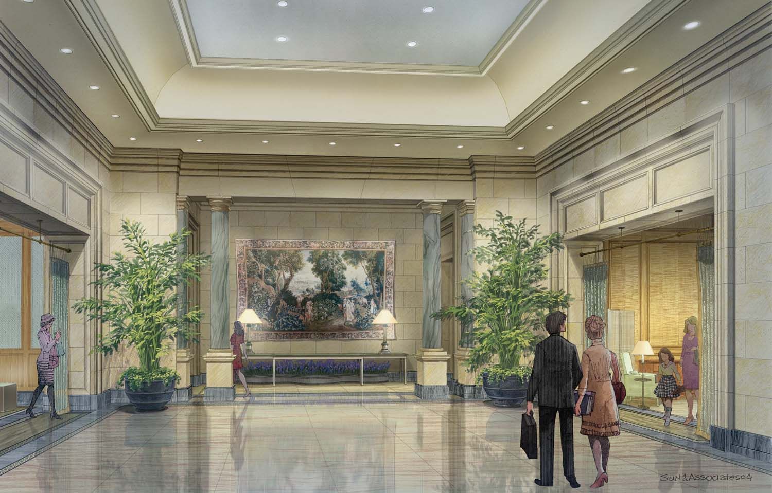 1988 Trinity Building Renovation Lobby; New York, NY; Swanke Hayden Connell Architects; Image © Suns Hung; Watercolor w/ airbrush