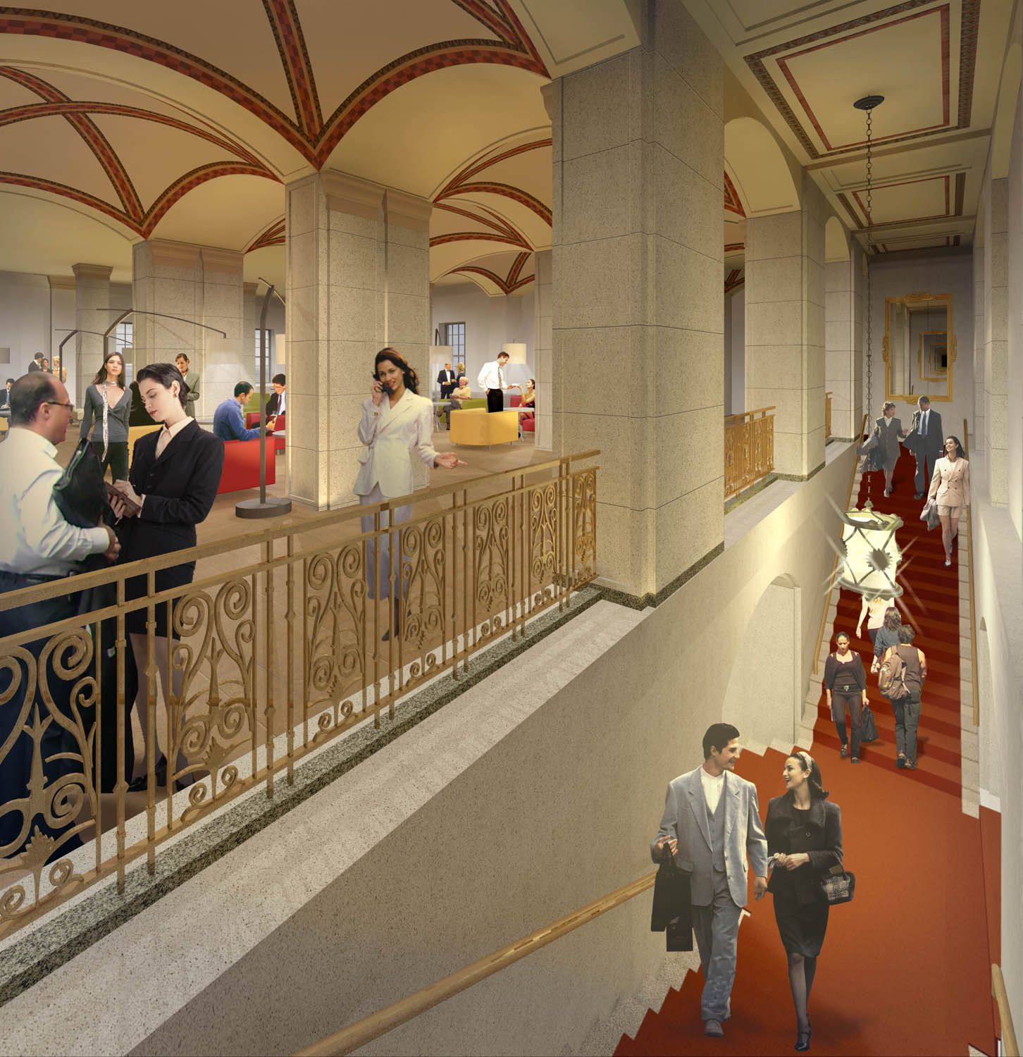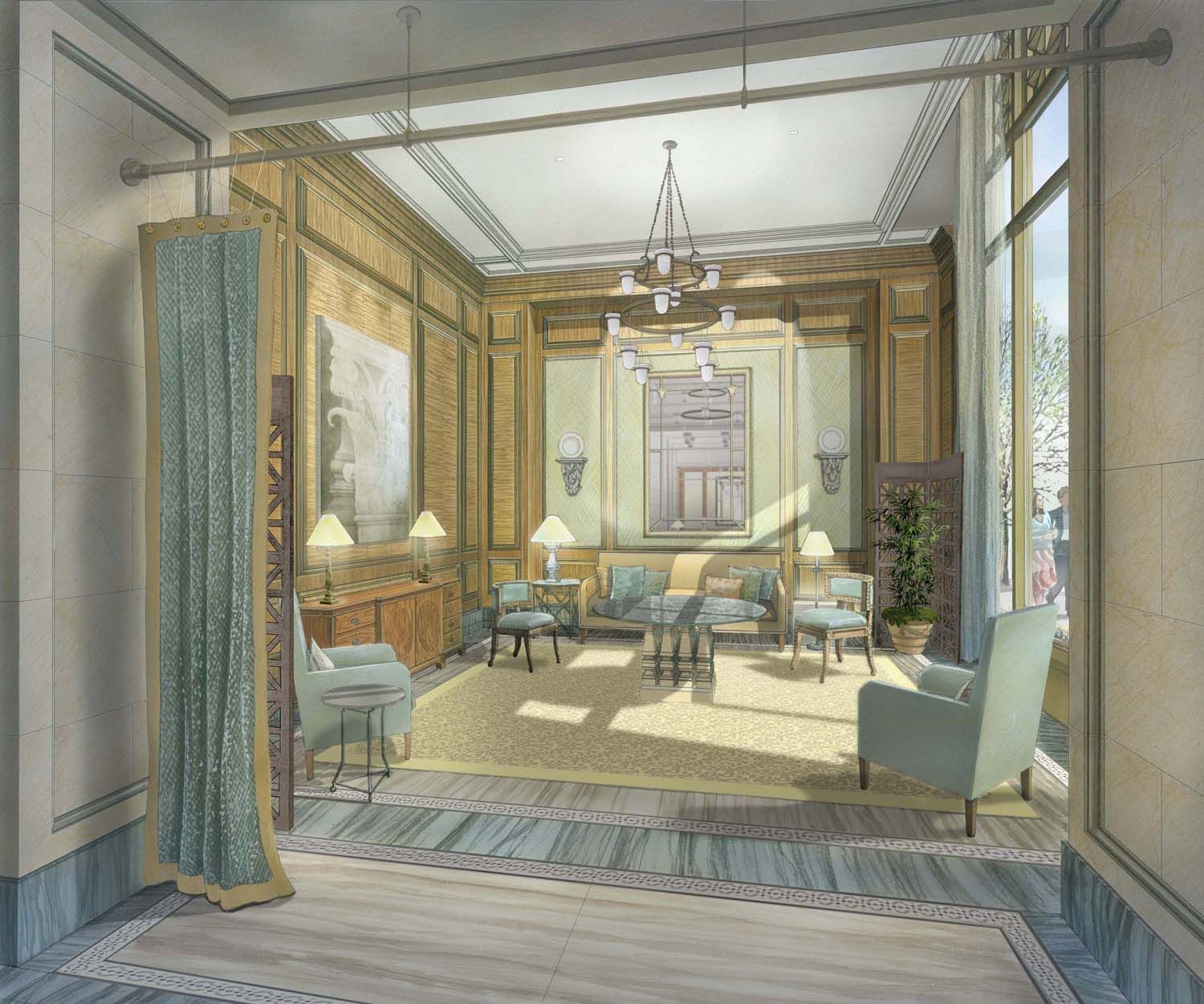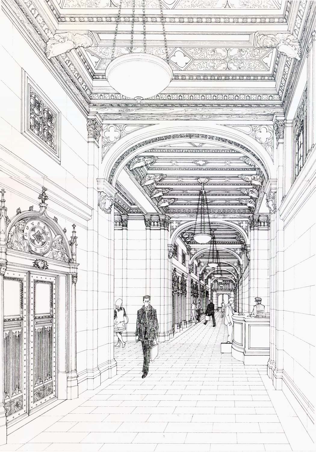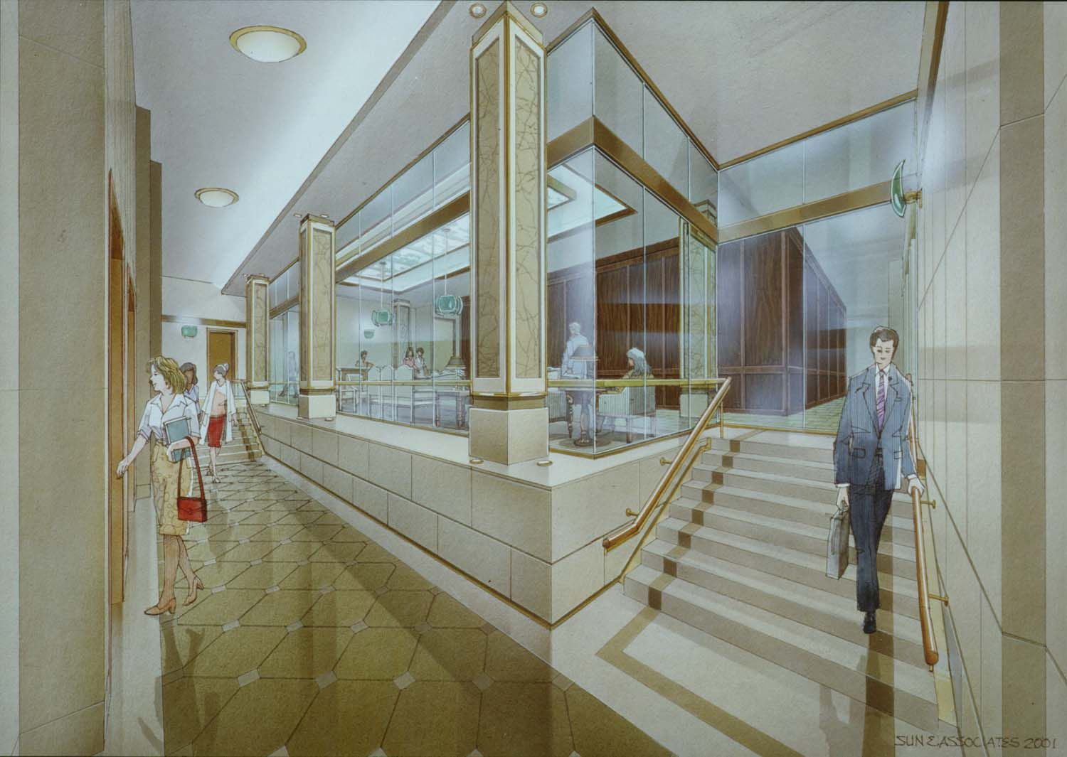 1988 Trinity Building Renovation Lobby; New York, NY; Swanke Hayden Connell Architects; Image © Suns Hung; Watercolor w/ airbrush