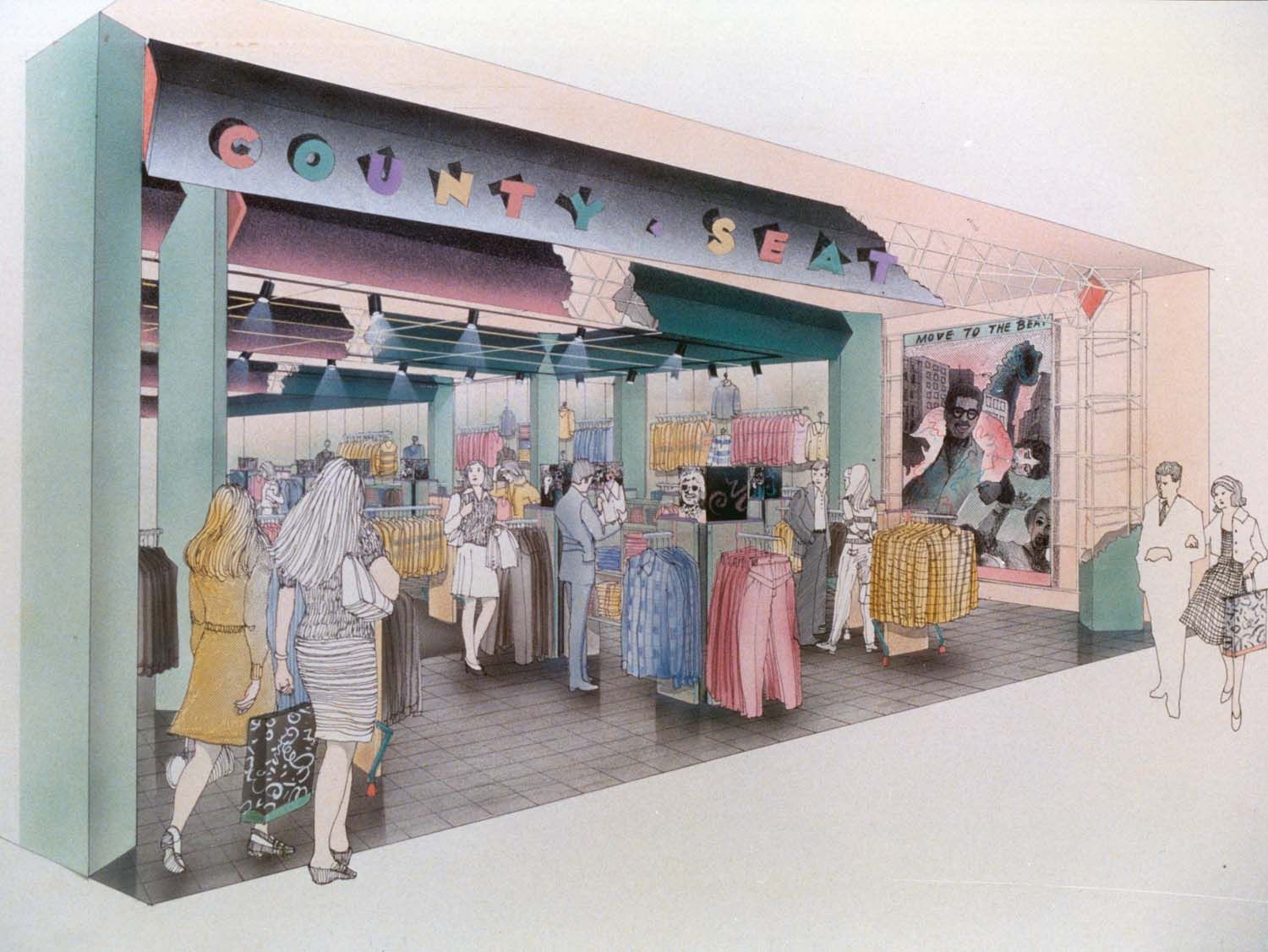 1987 County Seat Showroom; Walker Group CNI; Image © Suns Hung; Watercolor w/ airbrush