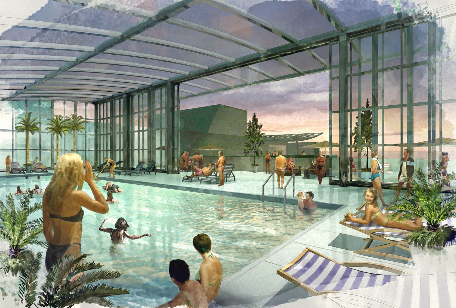 2001 Swimming Complex at Willow Brook Park; New Britain, CT; TLB Architecture; Image © Suns Hung; Watercolor w/ airbrush