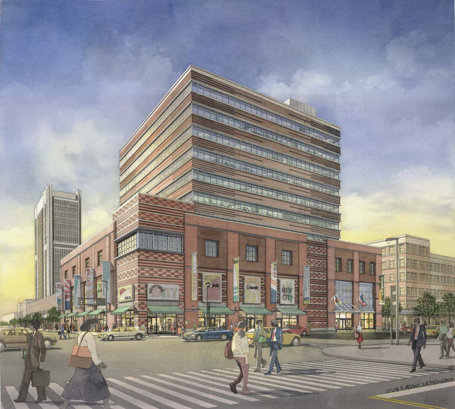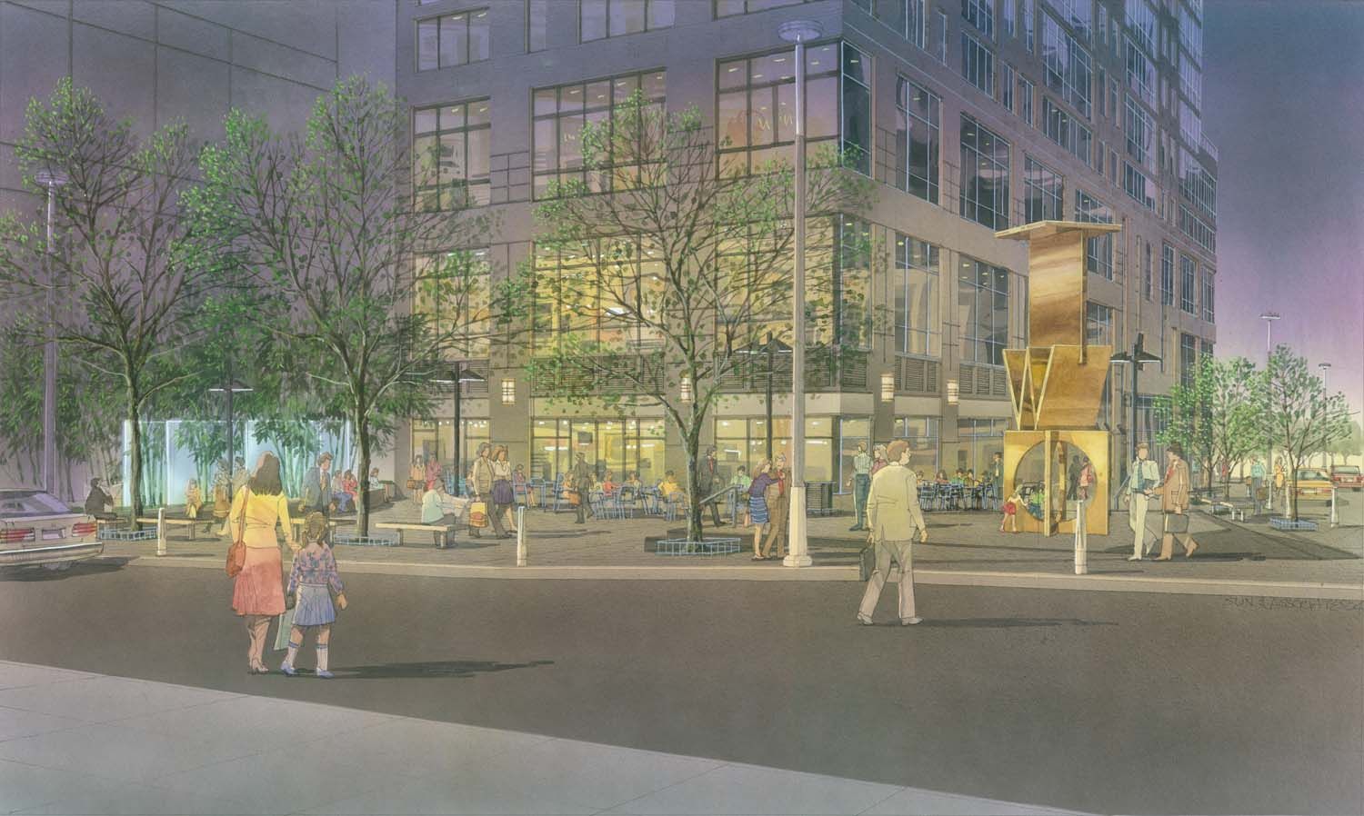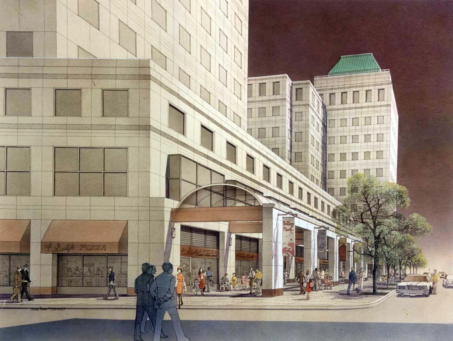 1986 Atlantic Terminal Brooklyn Center; Brooklyn, NY; Skidmore, Owings and Merrill; Image © Suns Hung; Watercolor w/ airbrush