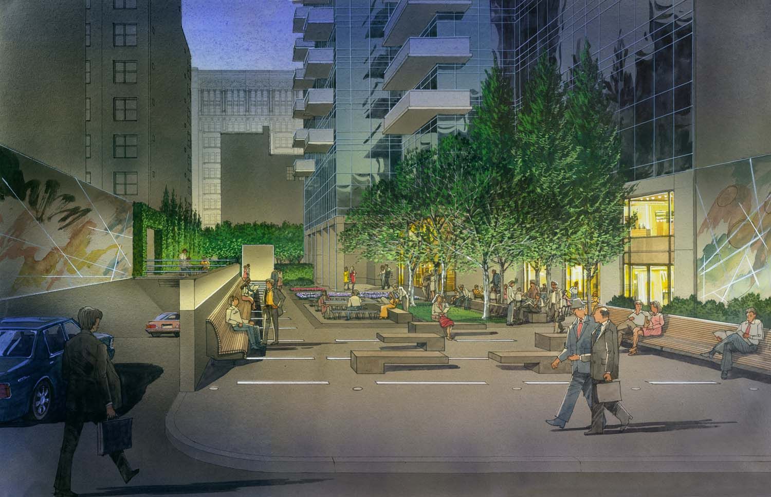 1989 St.James Plaza; New York, NY; Image © Suns Hung; Watercolor w/ airbrush