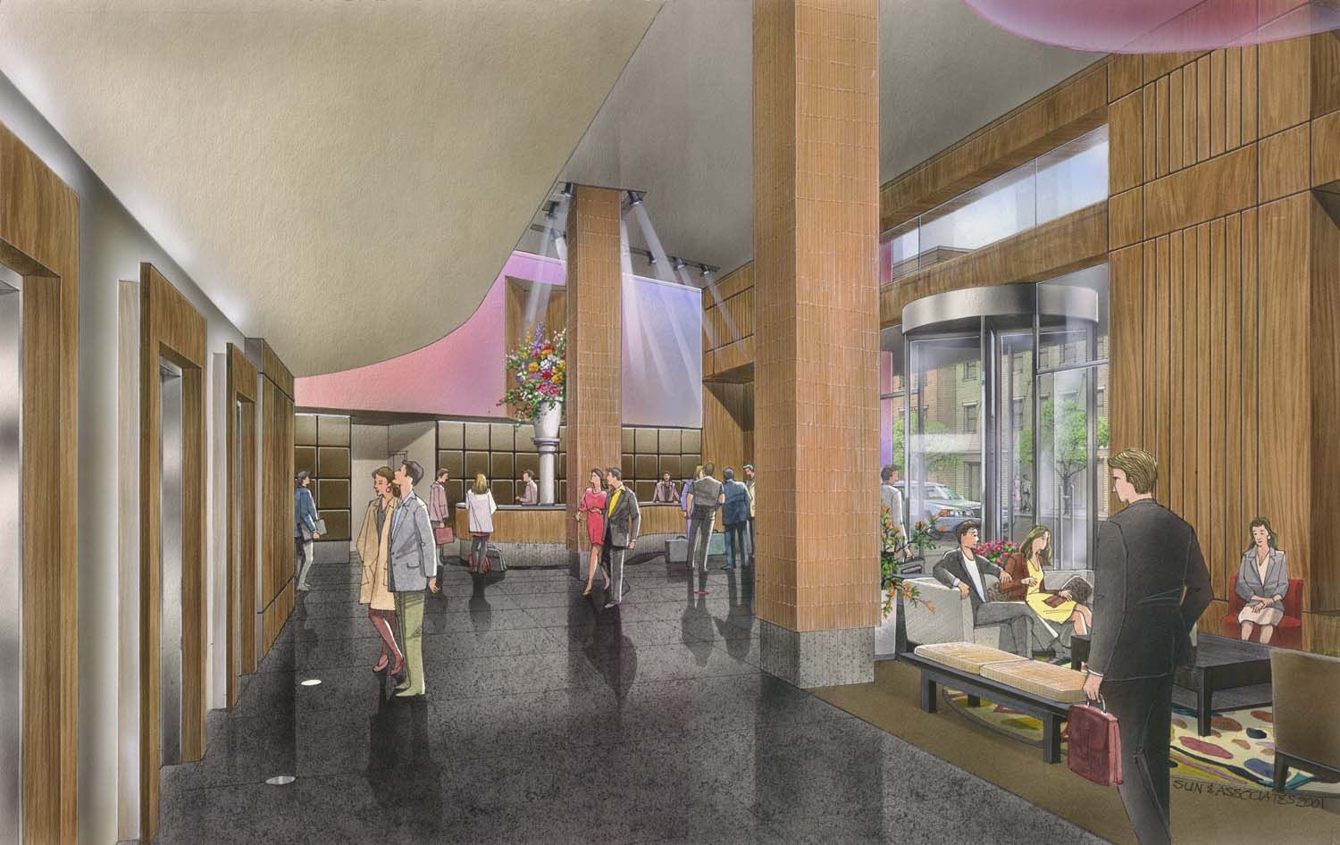 2001 Hotel Gansevoort Lobby02; New York, NY; The Stephen B. Jacobs Architects; Image © Suns Hung; Watercolor w/ airbrush