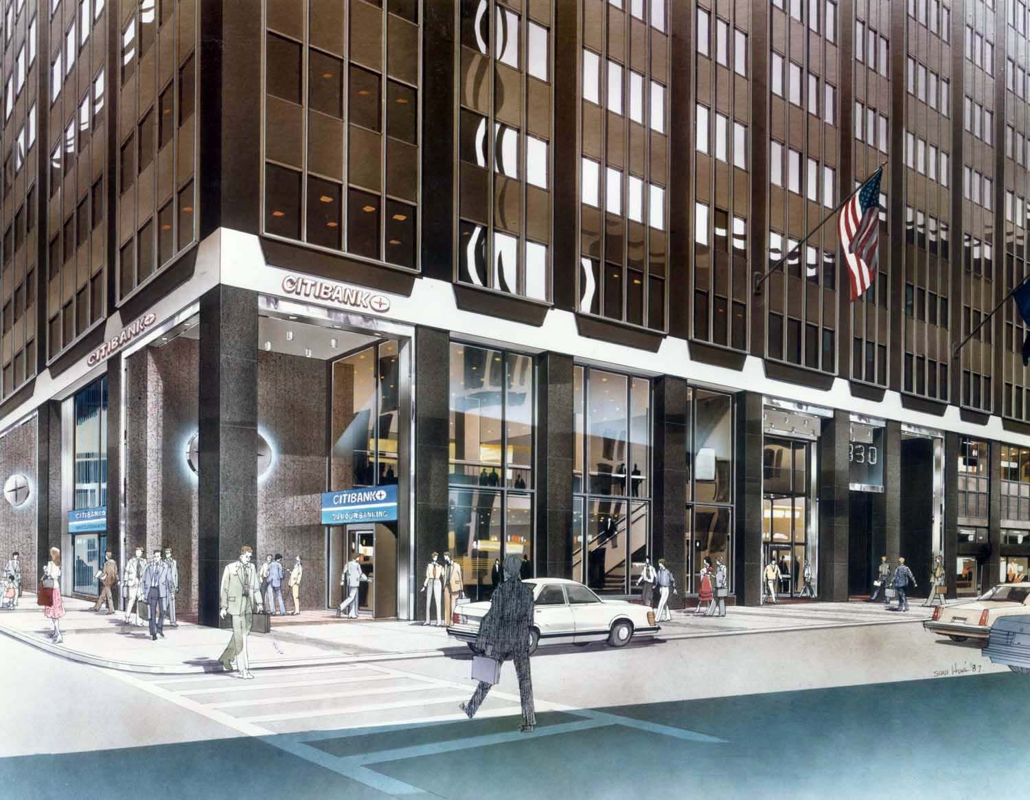 1988 380 Madison Avenue Entrance; New York, NY; Fox & Fowle Architects; Image © Suns Hung; Watercolor w/ airbrush
