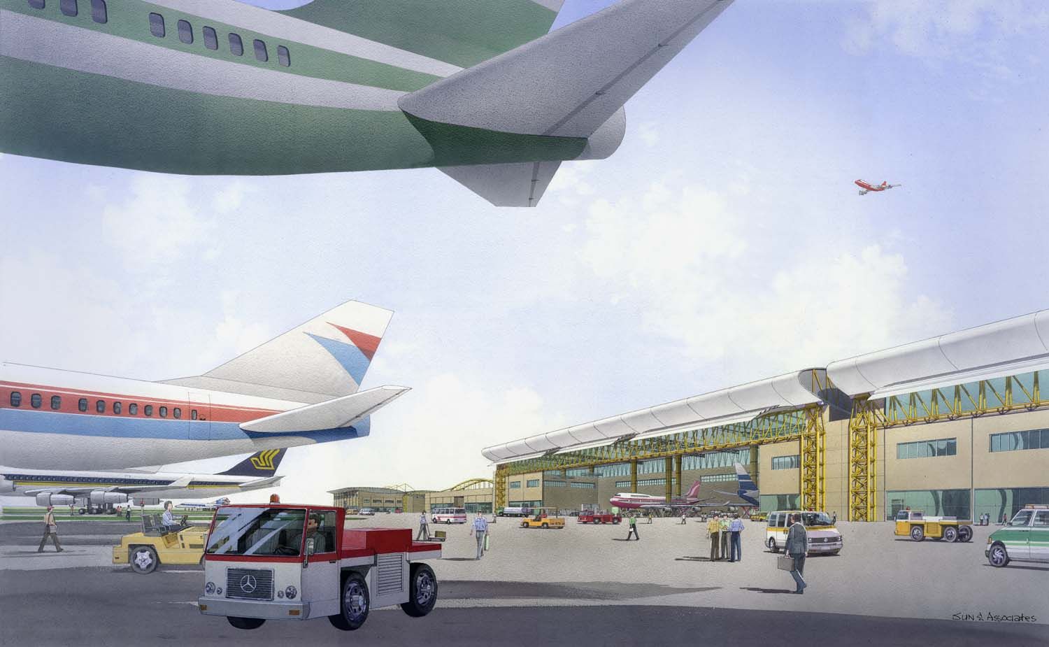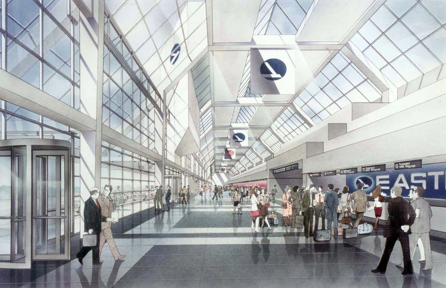1988 Eastern Airlines Unit Terminal; Laguardia, NY; William N. Bodouva Associates; Image © Suns Hung; Watercolor w/ airbrush