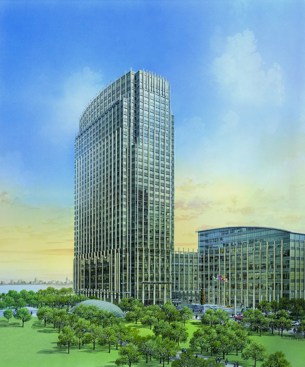 1998 Canary Wharf South HQ4-5; London, England; Cesar Pelli Architects; Image © Suns Hung; Watercolor w/ airbrush