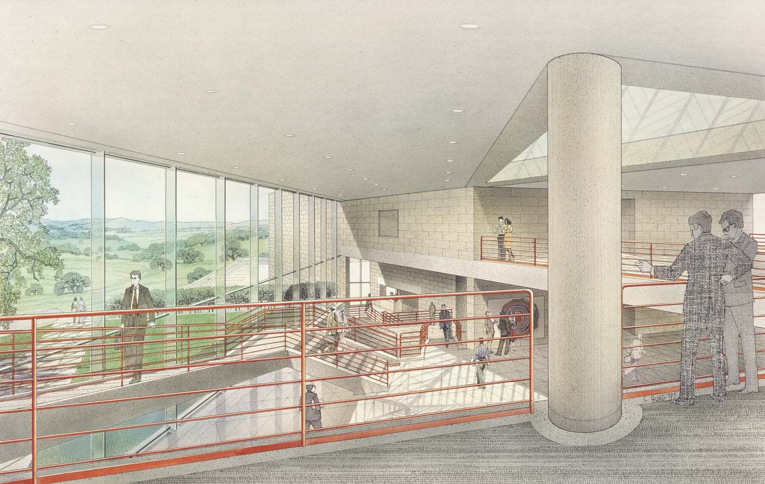 1984 Schlumberger Engineering Research Laboratory; Austin, TX; Emilio Ambasz & Associates; Image © Suns Hung; Watercolor w/ airbrush