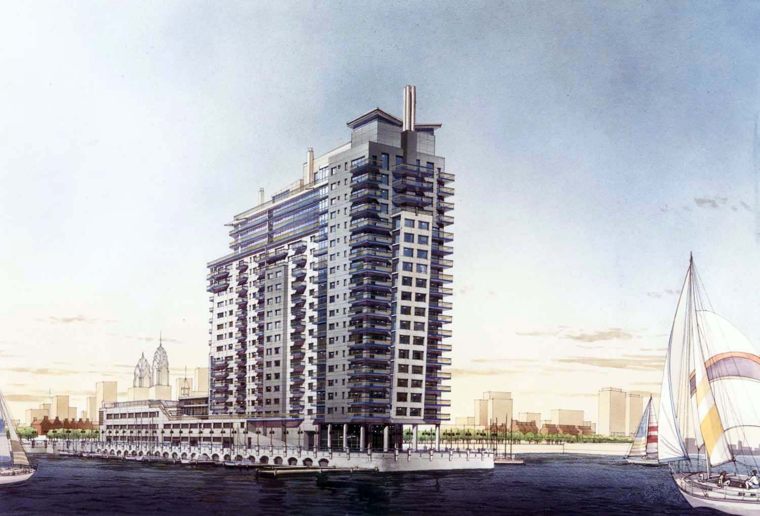 1990 Portside Residential Development; Philadelphia, PA; The Hillier Group; Image © Suns Hung; Watercolor w/ airbrush
