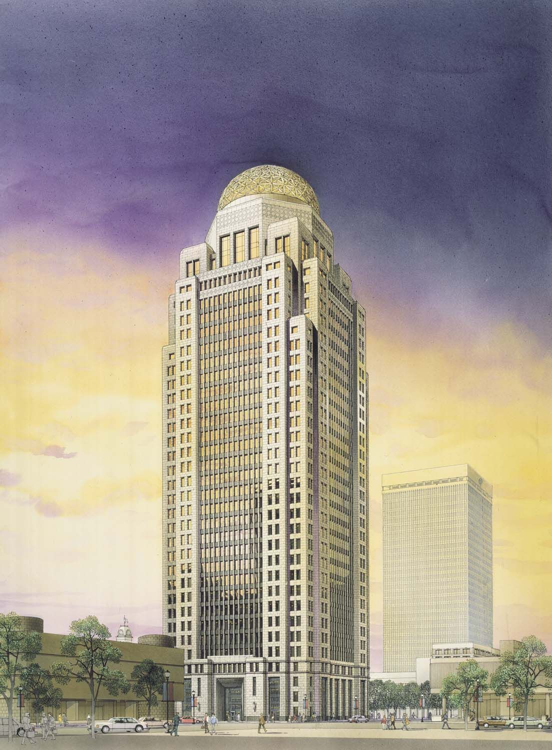 1989 Capital holding Center; Louisville, KY; John Burgee & Philip Johnson; Image © Suns Hung; Watercolor w/ airbrush