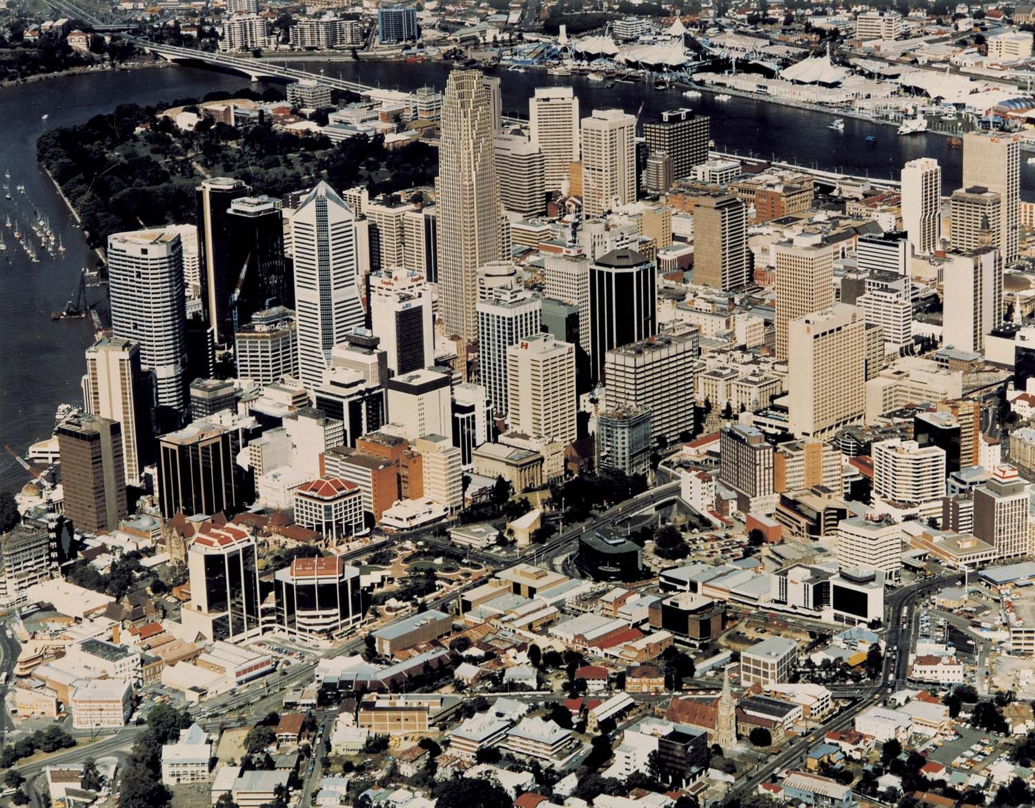 1989 Kern Corporation LTD Aerial; Brisbane, Australia; Johnson Burgee Architects; Image © Suns Hung; Digital Imaging