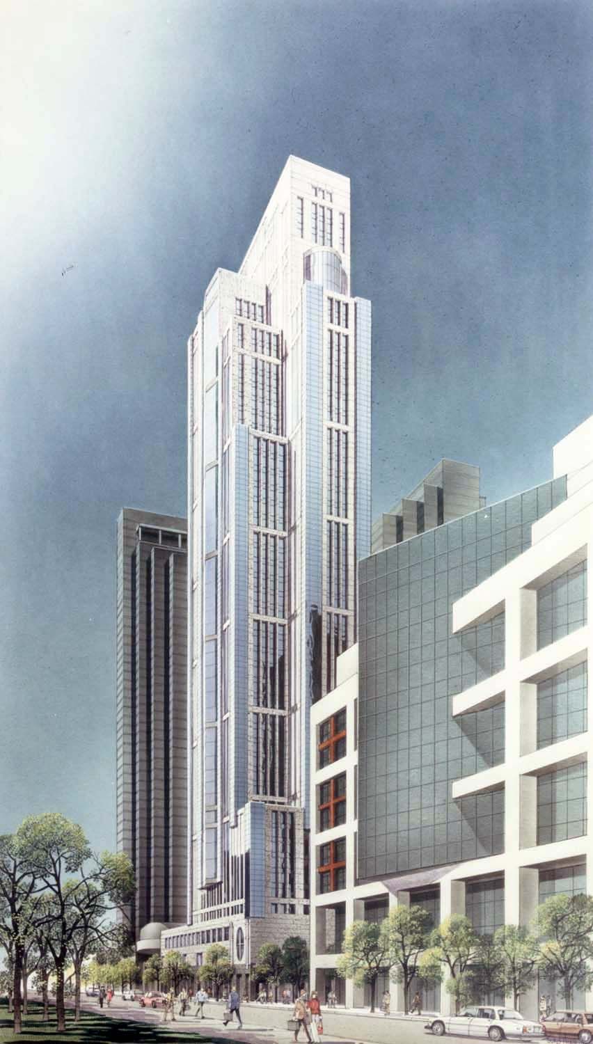 1991 Messeturm Office Building; Frankfurt, Germany; Color-Murphy Jahn Architects; Image © Suns Hung; Watercolor w/ airbrush