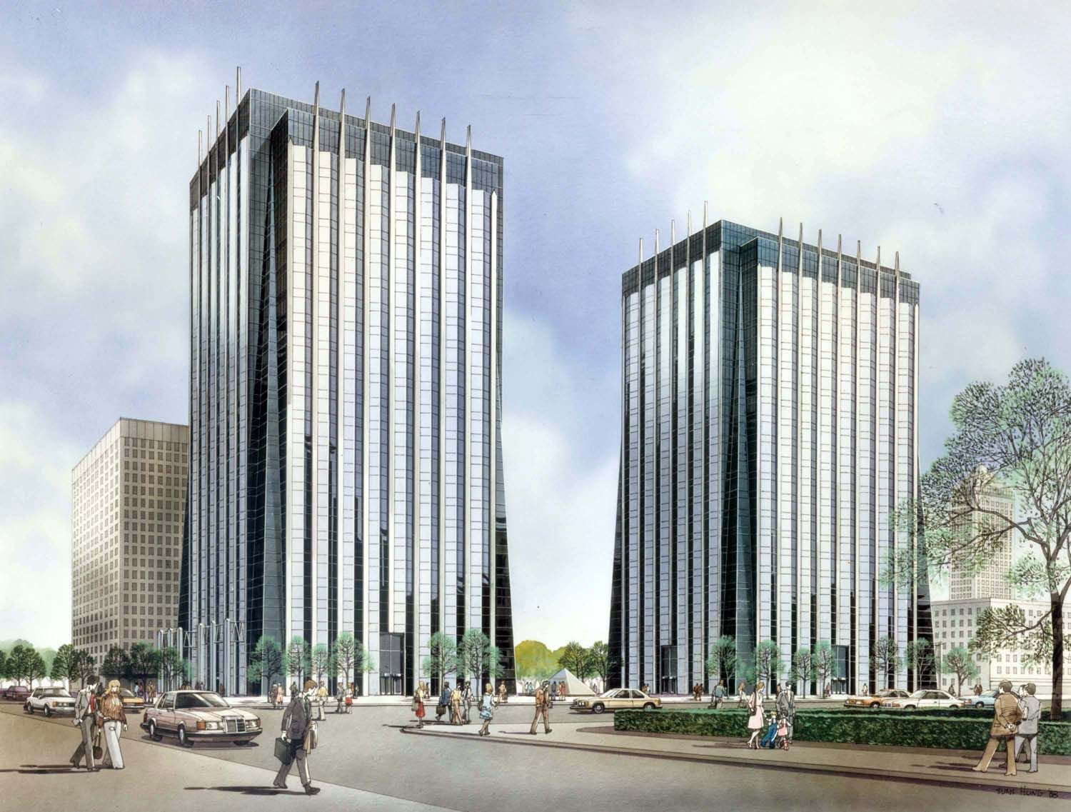 1989 Capitol Mall E; Johnson Burgee Architects; Image © Suns Hung; Watercolor w/ airbrush