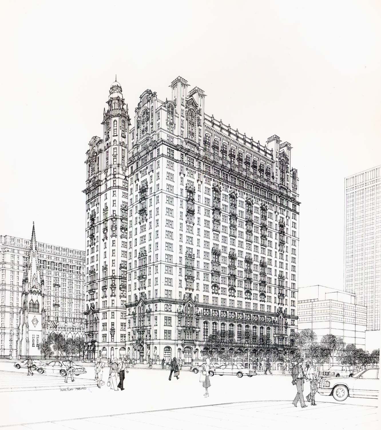 1988 Three Park Avenue; New York, NY; Shreve Lamb Ambersand & Harmon; Image © Suns Hung; Watercolor w/ airbrush